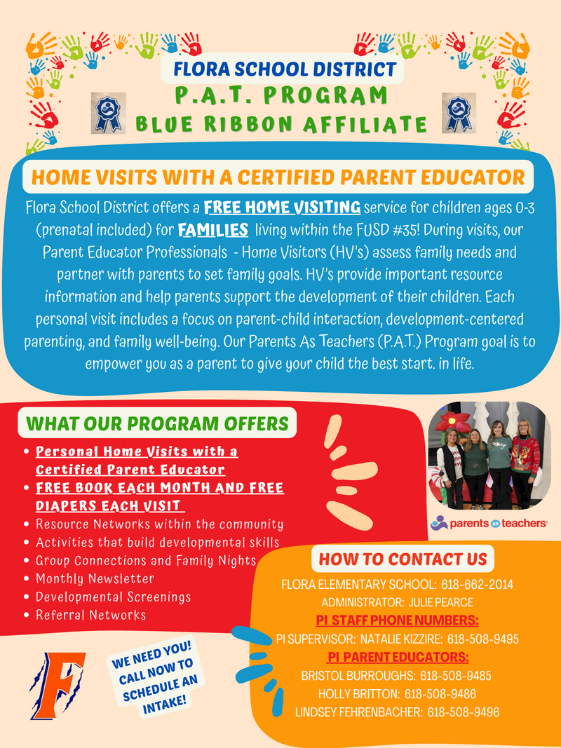 In 2026, Flora Community Unit School District completed the Parents as Teachers Quality Endorsement and Improvement Process and earned the highest designation: Blue Ribbon Affiliate status. This honor affirms that Flora Community Unit School District ranks among the top providers in the home visitation and parent education field, implementing the evidence-based Parents as Teachers model with fidelity and quality.